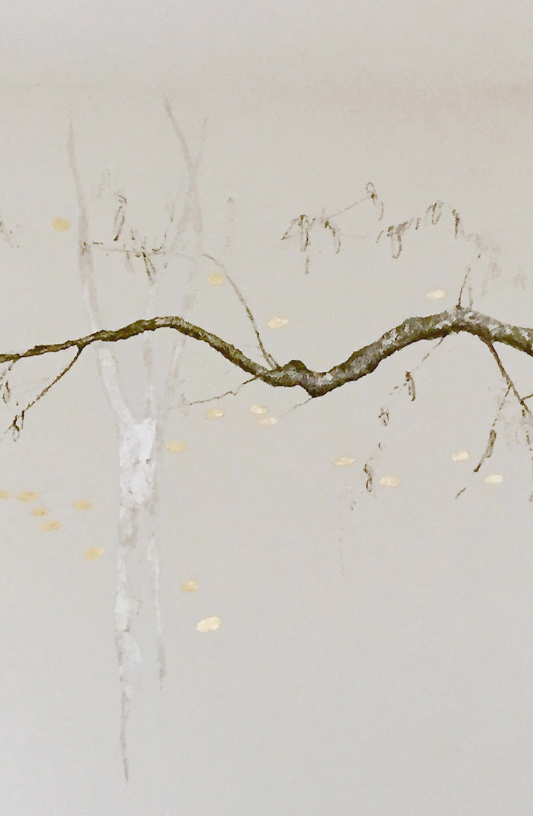Wall paintings in silver and gold leaf seamlessly take the outside nature inside.